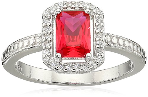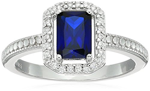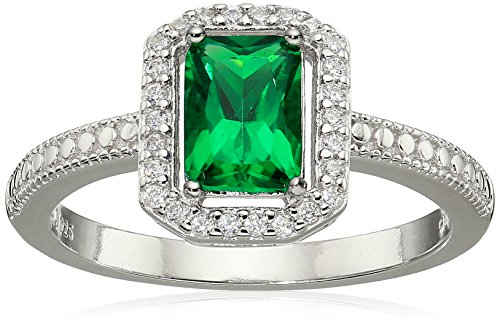 -. Title : Sterling Silver Genuine and Created Gemstone Emerald-Cut Ring with Clear CZ Halo Ring, Size 7