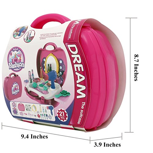 21 Pieces Little Girls Vanity Pretend Play Makeup Games Beauty Salon Cosmetic Set For little girls, kids, child, toddler playing pretend games / role play games.