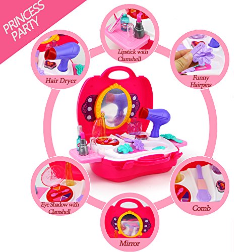 Princess durable portable makeup kit - my first makeup vanity case with convenience handle. Little girls pretend makeup play with vanity case. More accessories to play with, kids make up kit for girls.