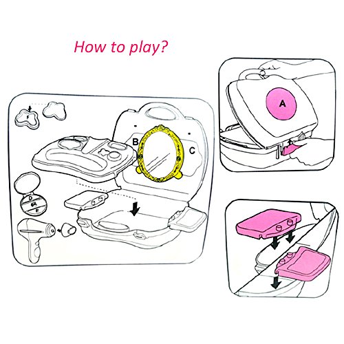Specification. Vanity case size : 9.4 x 3.9 x 8.7 inch. Hair Dryer, comb, brush, hairpin etc. All the thing is finished and the only thing your little angel needs to do is open this case to play.