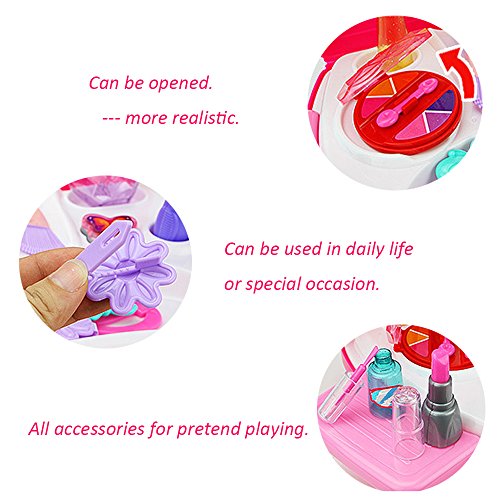 Pretend cosmetic beauty salon set for little girls playing pretend makeup games. All in one compact cosmetic palette. Fake makeup toys, does not apply to skin. Children makeup kit, improving girls hand-eye coordination, active & creative ability.