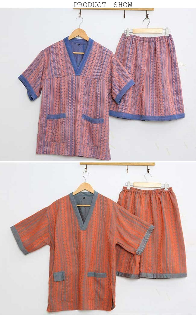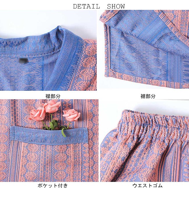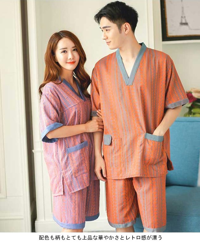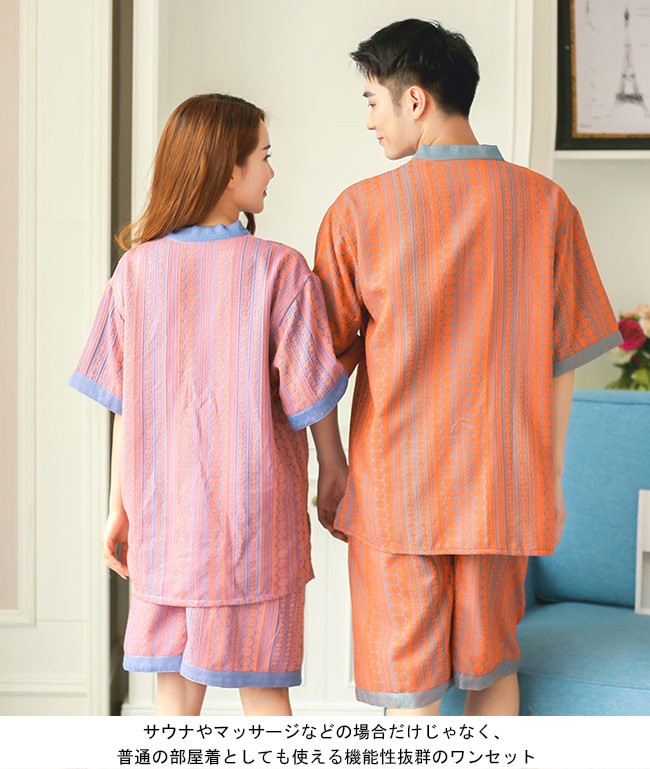 男女別販売 サウナ服 ハーフパンツ 半袖 メンズ レディース 部屋着 エスニック柄 マッサージ 男性用 女性用 ルームウェア男女別販売のサウナ服上下2点セットが登場吸湿性・通気性に優れた薄手綿混紡素材を厳選、ソフトで爽やかな着心地をもたらすサウナやマッサージなどの場合だけじゃなく、普通の部屋着としても使える機能性抜群のワンセットタイプ:男性用 女性用素材 綿混紡サイズ(cm) XL 2XL 3XL 4XL男 XL トップス 着丈76 バスト118 ボトムス 総丈56 2XL トップス 着丈78 バスト121 ボトムス 総丈58 3XL トップス 着丈80 バスト124 ボトムス 総丈60 4XL トップス 着丈82 バスト127 ボトムス 総丈62女 XL トップス 着丈66 バスト105 ボトムス 総丈52 2XL トップス 着丈68 バスト108 ボトムス 総丈54 3XL トップス 着丈70 バスト111 ボトムス 総丈56 4XL トップス 着丈72 バスト114 ボトムス 総丈58ご注意:※サイズは平置きサイズです。素人採寸ですので、若干の誤差がございます、ご了承