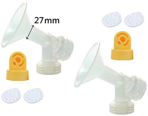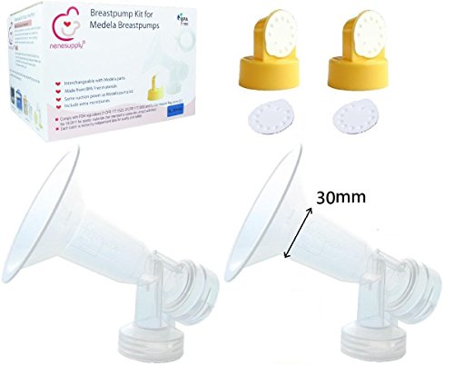 This product is designed to use with Medela Mini Electric Plus, Pump-In-Style, Swing, Lactina, and Symphony Breastpumps. It DOES NOT work with Medela Single Deluxe, and Harmony Breastpumps. It contains two breastshields, two valves and four membranes. The breastshield is designed in one-piece, and thus, have better suction than 2-piece ones. In addition, we give you extra membranes so you can have replacement when existing ones break. NeneSupply breastshield can be connected with Medela storage bottles, and is 100% compatible with Medela valve and membrane. You may attach your own Medela valve onto NeneSupply breastshields, or you can also purchase spare NeneSupply duckbill valve on Amazon. All items can be sterilized in water steam. For best protection and hygiene, all items are packaged in corrugated carton, sealed by manufacturer.Feature