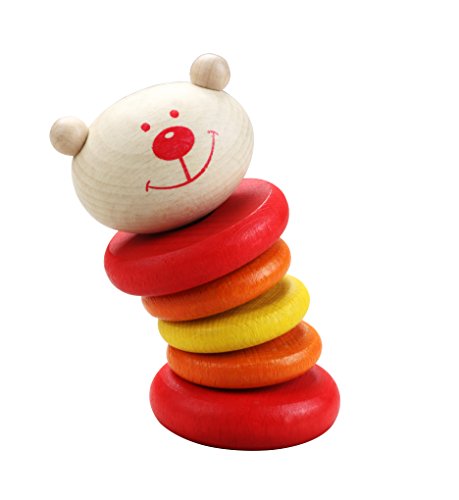 This itty-bitty bear rattle is a time-tested classic, the perfect play-thing sized just for baby's small hands. Its irresistible textures and vivid colors reward curiosity while its cute clicking sounds engage with every shake. Each component is designed to fascinate and delight, capturing baby's attention as she discovers the newness of life. Sturdy wood ensures this toy withstands the test of time.Feature