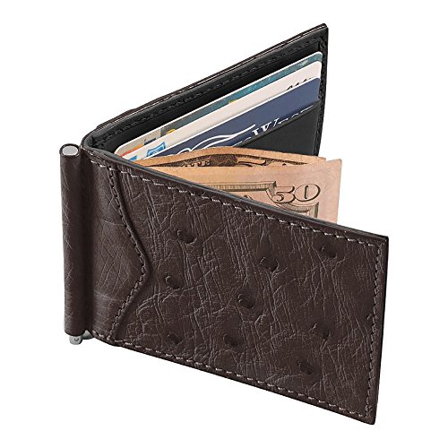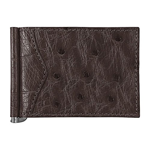 -. Title : Money Clip Wallet, Ostrich Leather, ID Holder, 3 CC Slots, Brown/Brown