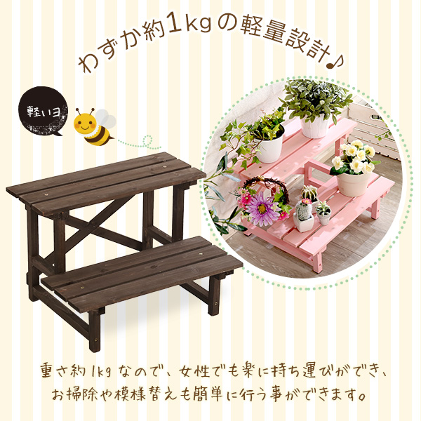 ●温かみのある天然木のデザインがお花や小物を引き立て、優しい雰囲気にしてくれます