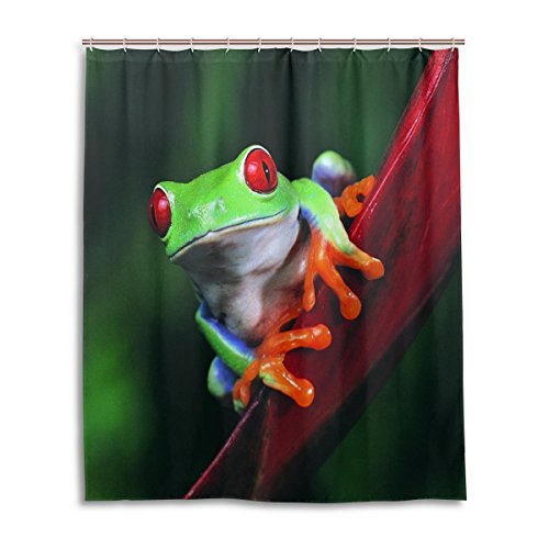JSTEL Decor Shower Curtain Frog Pattern Print 100% Polyester Fabric Shower Curtain 60 x 72 Inches for Home Bathroom Decorative Shower Bath Curtains