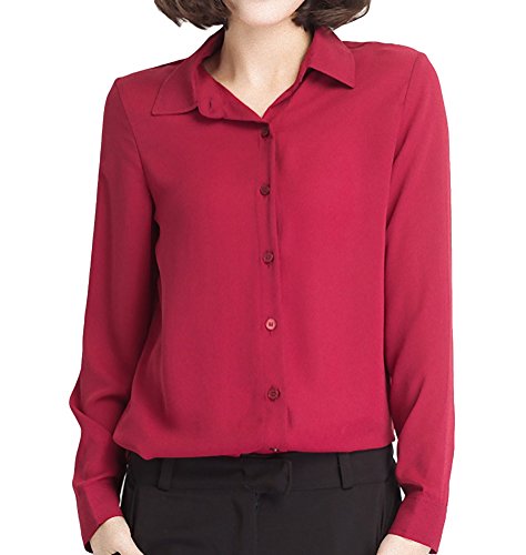 -. Title : applesnow(アップルスノー) 7色 ブラウス ワイ シャツ ドレス 長袖 ゆったり トップス レディース (S, 赤)