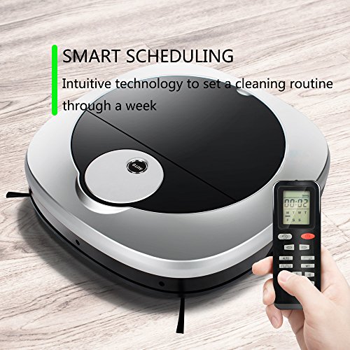 Klinsmann robot vacuum cleaner with water tank, remote control, pet hair care and dry&wet mopping for hardwood floor and short-haired carpetHands-free Vacuuming: it climbs over rugs, less than 10 degrees and rolls over uneven floor. Cliff sensor can avoid falling over stairs.You can also control it with remote control.