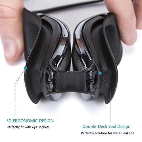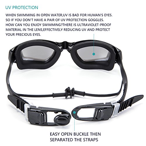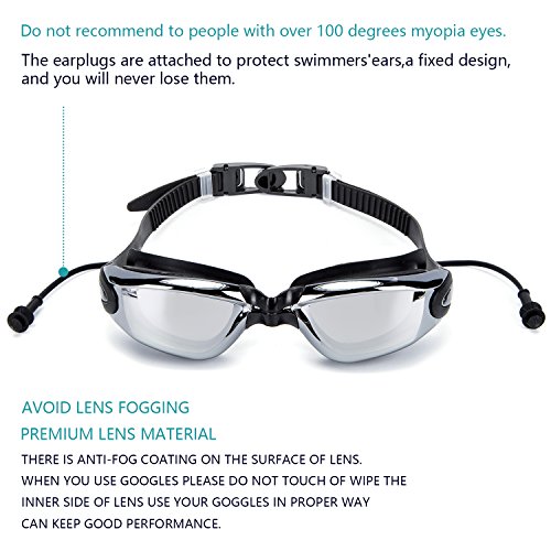 The earplugs are attached to protect swimmers' ears, a fixed design,and you will never lose them. Ergonomic completely sealed silicone protective circle design prevent water from entering your goggles ,and help to reduce the pressure around the eyes, keep your eyes dry and comfortable.