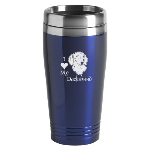 16-ounce Stainless Travel Mug - I Love My Dachshund - Blue