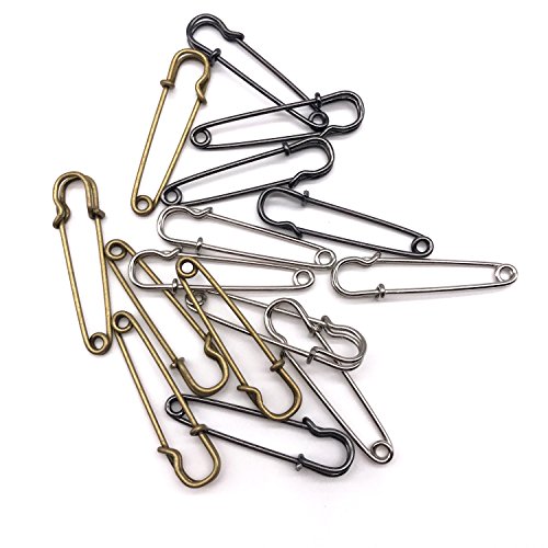 15 pcs 2 inch 3 inch Heavy Duty Safety Pins for Scarf Sheet Blankets Skirts Kilts Knitted Fabric Crafts (2 inch Black#Silver#Bronze)