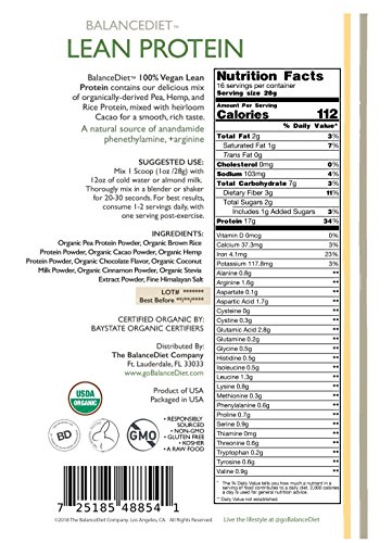 BalanceDiet Lean Protein Plant Based (Vegan) Blend combines 3 of the highest quality vegan sources of USDA Certified Organic protein (hemp, rice, pea). Our exclusive blend provides a delicious and nourishing, complete source of protein with superior amino acid and essential fatty acid profiles.