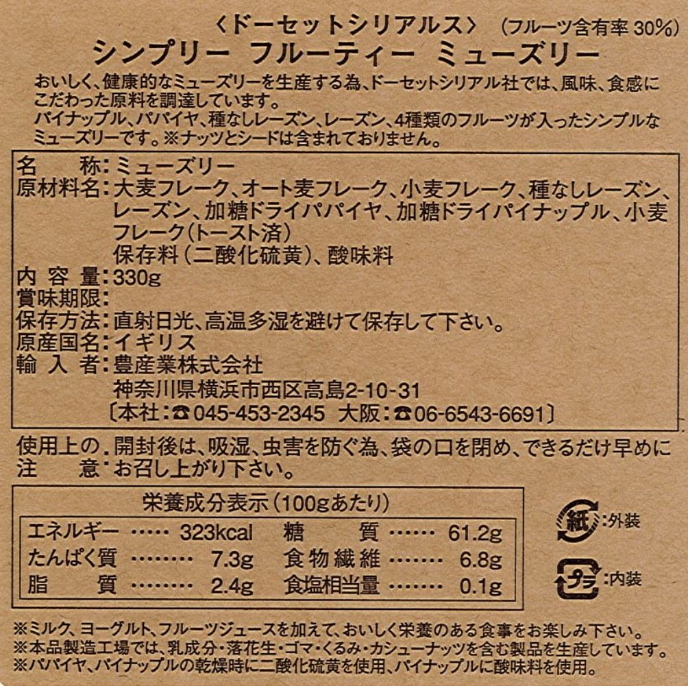 Simple Muesli with four kinds of papaya, pineapple, sultana raisin, and leson.