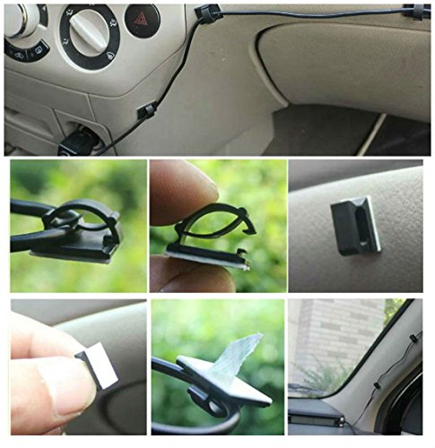 AKOAK 100 Pieces Self-adhesive Cable Clips Drop Clamp Cable Tie Holder for Car, Office and Home