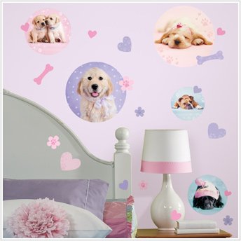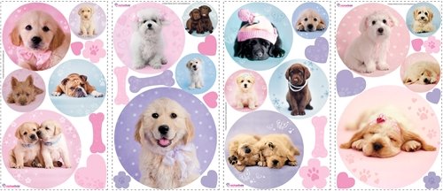 -. Binding : Tools & Home Improvement -. Brand : RoomMates -. Department : Arts & Entertainment -. EAN : 0744664156337 -. Feature : Assembled size - 1" wide x 1" wide to 9" wide x 9" high / Easy to apply - just peel and stick! / Applies to any smooth surface / Removable and repositionable with no sticky residue / Peel & stick product made in the USA -. Label : York Wallcoverings -. Manufacturer : York Wallcoverings -. Model : RMK1650SCS -. MPN : 54187 -. NumberOfItems : 1 -. PackageQuantity : 1 -. PartNumber : 54187 -. ProductGroup : Home Improvement -. ProductTypeName : BUILDING_MATERIAL -. Publisher : York Wallcoverings -. Studio : York Wallcoverings -. Title : RoomMates RMK1650SCS Puppy Spots Peel and Stick Wall Decals, 37 Count -. UPC : 744664156337