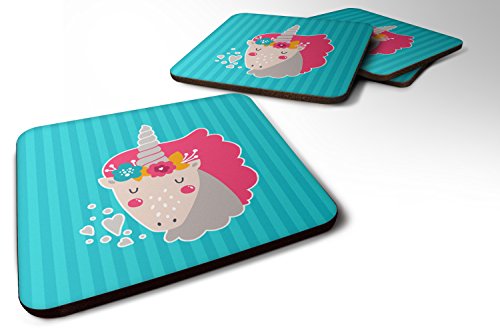 Caroline's Treasures Unicorn Blue Stripes Foam Coaster Set of 4, 3.5, Multicolor