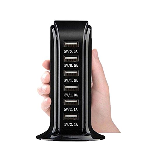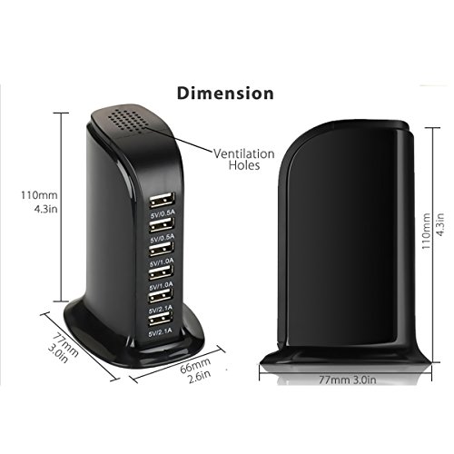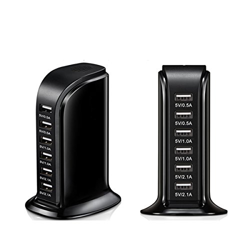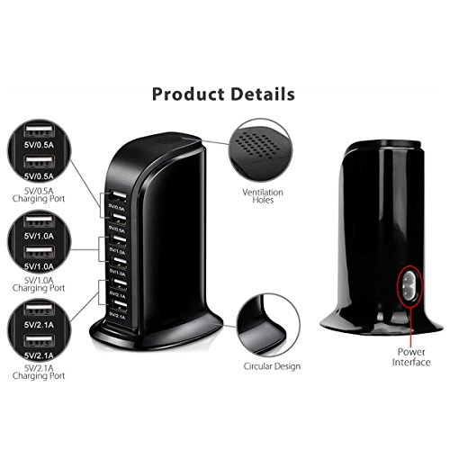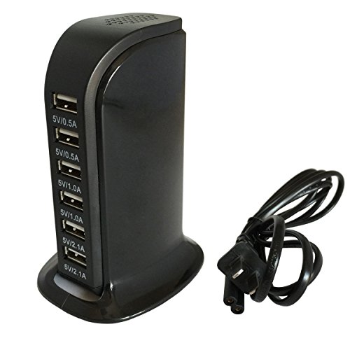 6-Port Desktop USB Hub/Charging Station with Smart IC Technology for Apple iOS, Android & Virtually all Other USB Compatible Devices (6-Port Balck)