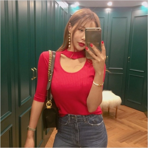 Women`s Ribbed T-shirts Black Beige Red
