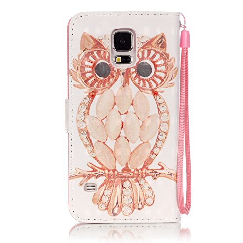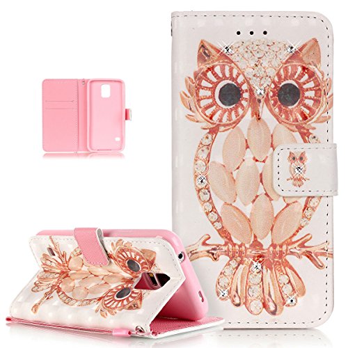 Galaxy S5 Case,Galaxy S5 Neo Case,ikasus Shiny Glitter Diamond Colorful Art Painting PU Leather Flip Wallet Pouch Stand Credit Card ID Holders Case Cover for Galaxy S5 / S5 Neo,Jewelry OWL