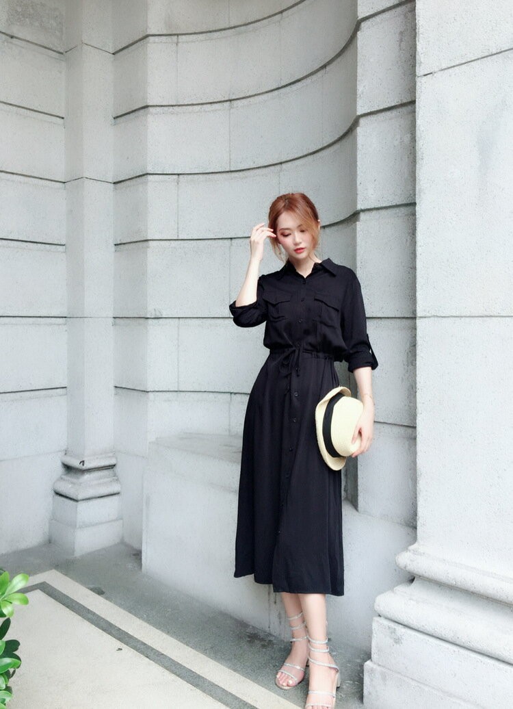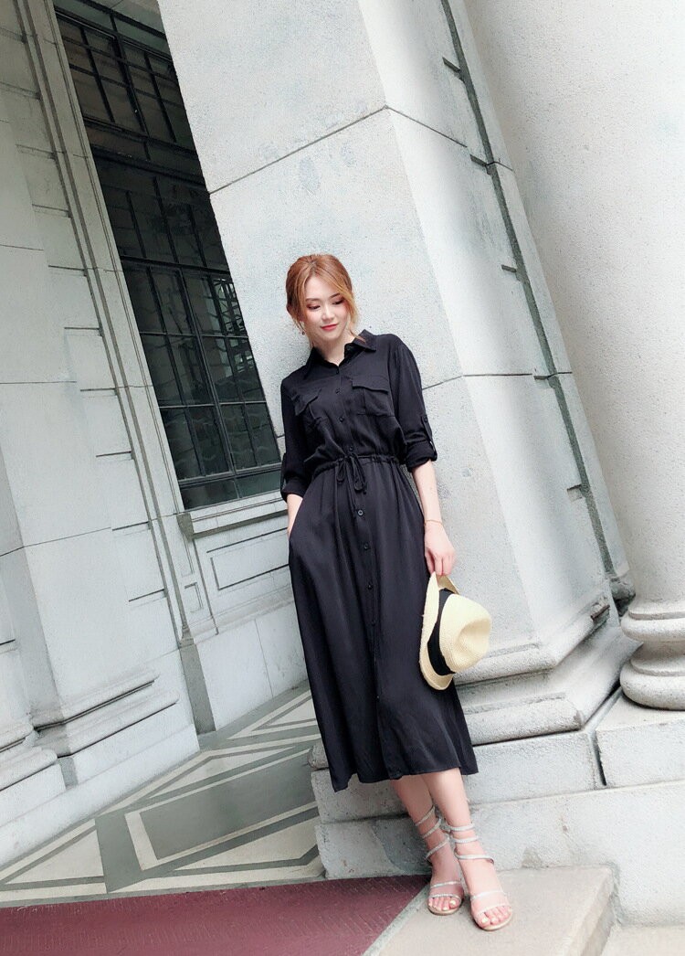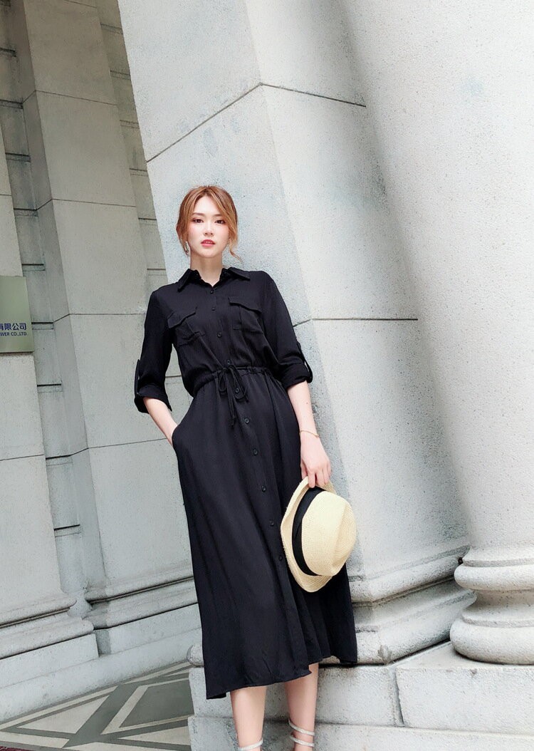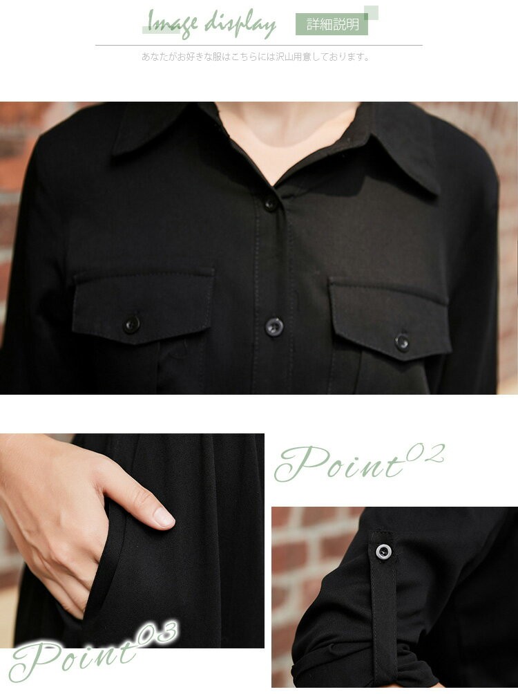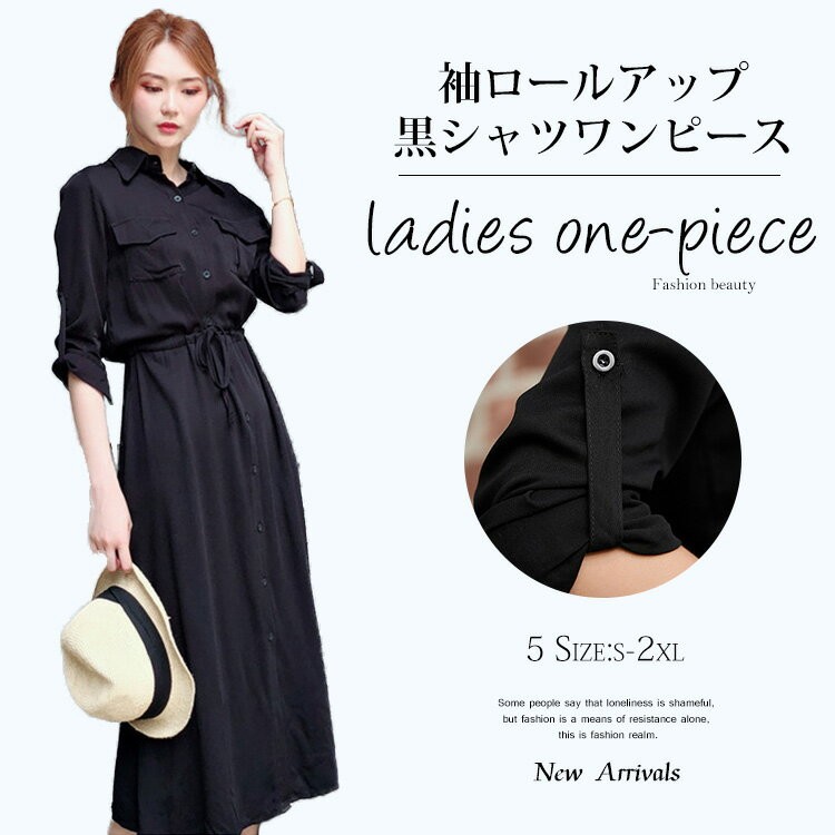 ■キーワード:シャツワンピ レディース シャツワンピース ワンピース 秋 ロング 長袖 カーディガン 2WAY ロールアップ ロング丈 膝下丈 ミモレ丈 ワンピース ロングワンピース 通勤 OL フェミニン 黒 無地 ■季節:春 秋★素材:ポリエステル★伸縮性:なし ★生産国:中国 ★カラー: (写真参考)★サイズ:(単位cm)S: 着丈118 バスト90 肩幅38 袖丈59 M: 着丈119 バスト94 肩幅39 袖丈60 L: 着丈120 バスト98 肩幅40 袖丈61 XL:着丈121 バスト102 肩幅41 袖丈62*あくまでご参考になります。平置き実寸サイズをご確認ください。