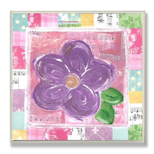 The Kids Room by Stupell Purple Flower with Patchwork Border Square Wall Plaque