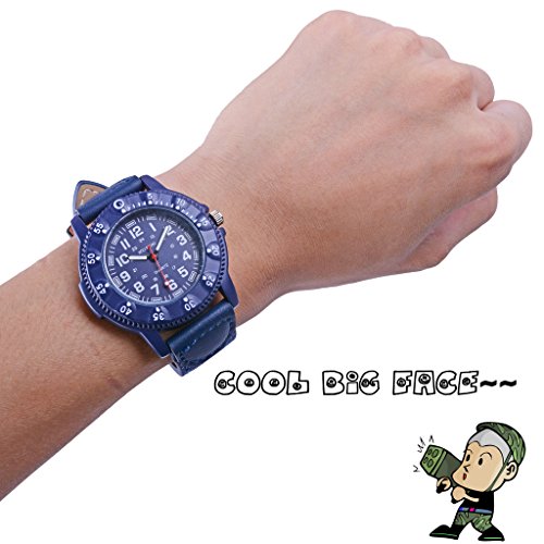 -. Title : Wolfteeth Teenager Boy's Sport Watch Unique Big Face Analog Watch Military Army Watch Casual Fashion Design Water Resistant PU Strap 3063