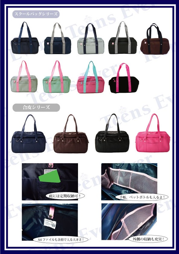 丈夫で柔らかい合皮バッグの登場!!バッグの中の機能性も抜群!!ネット状の内ポケットは携帯、眼鏡ケースなどに丁度いい大きさ!だからバッグの中はいつでも綺麗!底板の裏には隠しポケットが!!鍵や定期を入れてもOK!更に便利なペットボトルホルダー付き!使いやすさは保障付き!!
