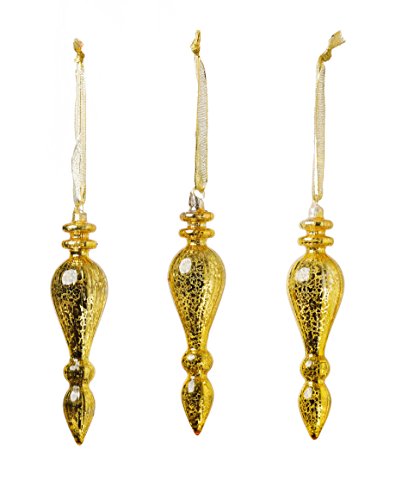 Seasonal Color Style | Vintage Style Gold Mercury Glass Drop Ornament | Set of 3
