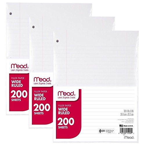 Filler Paper by Mead, Wide Ruled, 200 Sheets (15200), 3 Pack