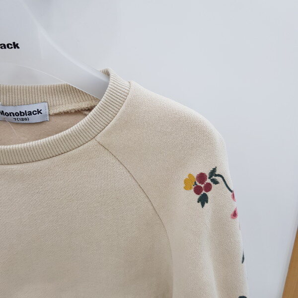 꽃무늬가 포인트인 꽃나염라그랑티셔츠입니다.안쪽기모가있어따뜻합니다.