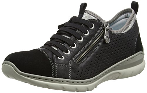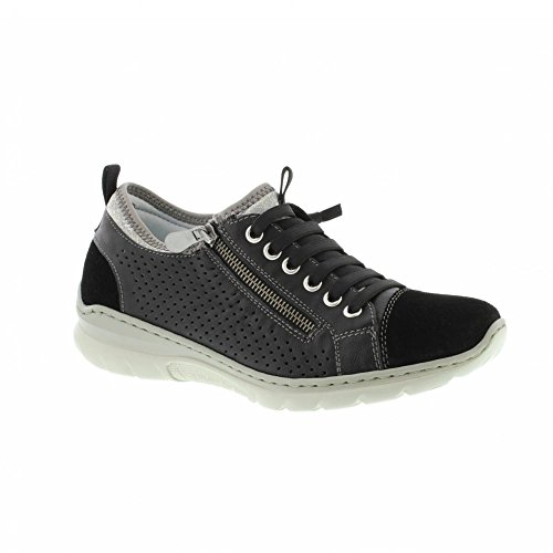 Studio : Rieker Publisher : Rieker Binding : Apparel Product Description These stylish trainers have a contemporary design with both elasticated laces and a zip fastening. The shoes feature leather uppers with perforated detailing and contrasting faux suede accents, along with a memory foam footbed for lasting comfort. 0