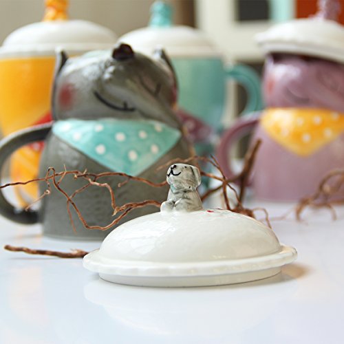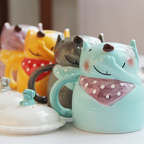-. Feature : Material: Made of premium ceramic, by high temperature firing. It's environmental and safe, non-toxic. / The interior is utterly smooth for complete washing, leaving no residue behind, can wash easily and anti-bacteria. It is sturdy, durable and not easy to chip and scratch. Special designed packing better that ensures the intactness of the ceramic. Unique dogs lid design, it's made of 3D ceramic, concave and convex lid design can cover the cup mouth completely, but also to prevent the dust into the cup, clean and sanitary. / Comfotable handle, it's anti scald handle, use of complex process manufacturing, so that the handle and the cup is tightly fitted, it's anti slip and anti scald, easy to hold. / The surface with cute cartoon animal and used manual spray, and in the animal body has small hole and some uneven texture, it's normal. The ceramic mug edge is smooth can prevent your lips hurt when drink. Anti slip mug bottom and the reinforcement bottom, make it anti-breaking performance more stronger, and the bottom is the animal's head can make the cup steadily, when you not use it, you can put it in the desk invertly. / Exquisite fashion, large capacity, easy-grip with handle, suitable for hot and cold drinks. The mug used high temperature sintering, bright luster, corrosion resistance, not easy to fade. This elegant coffee mug is reusable therefore eliminating any disposable paper or styrofoam cup waste,your satisfaction is guaranteed. It is not just a simply coffee mug online,with it,one can enjoy the serenity and grace of life.