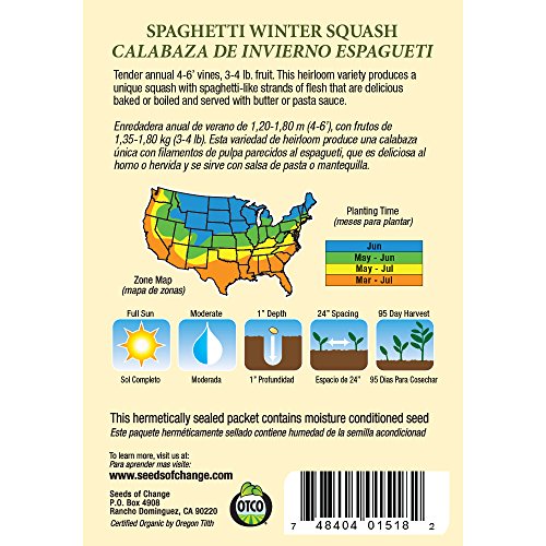 Seeds of Change Certified Organic Squash, Winter, Spaghetti - 3.3 grams, 20 Seeds Pack