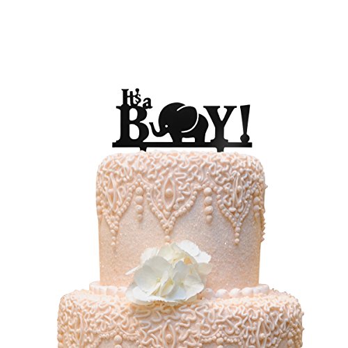Grinde NO Personalized Elephant Kid's Birthday Cake Topper It's a Boy Black