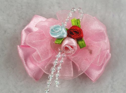 (Applique)/Stationery Party Supplies/Gift Wrapping Supplies/DIRECT FROM USA/20pcs Ribbon Organza 3 Flowers Mahogany Pearl Flowers Bows Wedding Appliques (Pink)