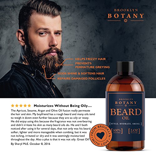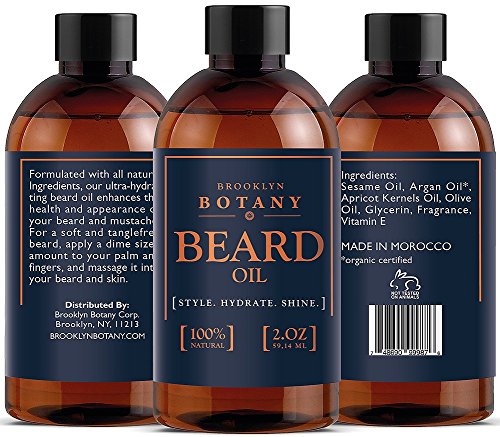 Moroccan Beard Oil & Leave-In Conditioner 2 oz - 100% Pure & Natural, Lightly Scented - with Organic Argan Oil - Brooklyn Botany