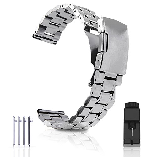 -. Feature : Band width: 22mm; Length: 175mm; Thickness: 3.5mm / Premium Quality- Made from premium-quality 304 stainless steel ensuring its toughness and durability in use. Silver polished surface brings you a strong sense of high-class quality and elegance. Extremely flexible links is connected steadily, worries free from the links falling off. / Adjustable Length -- The watchband's length is adjustable from 125mm to 175mm (3 links can be removed at each side). It is of great convenience for you to click the button to open the clasp. / Suitable For Watches -- [For Moto 360 2nd Gen 46mm 2015] [For Pebble Time/ Pebble Time Steel/ Pebble Classic] [For LG G Watch W100/Urbane W150/ R W110 ] [For Samsung Gear 2 R380/ Neo R381/ Live R382] [For Seiko SKX007 ] [For Vostok Amphibian ] [For Cookoo Smart Watch ] [For Fossil Q Founder, Fossil Q Grant ] [For Martian Notifier Smart Watch] [For Vector Luna, Vector Meridian] [For Basis Peak Fitness Tracker Watch] / Package - Including a piece of watchband, a piece of spring bar tool and 4 pieces of pins.