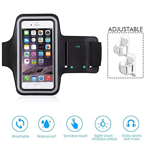 -. Feature : PREMIUM MATERIALS: Made of stretch resistant neoprene. / UNIVERSAL SIZING: Multi-slot Adjustable Velcro Armband Will Fit Almost Any Arm Size Up To 14". / Compatible with iPhone 6 / TOUCH SCREEN COMPATIBLE: Enjoy the full use of your Smartphone through the protective screen cover on the armband with fully touch compatible, easily answer calls, manage your playlist, or activate your stopwatch without removing the phone. / EXTRA FEATURES: Water resistant design protects against water and sweat. Built-in key pocket; secret compartment stores your house key while exercising.