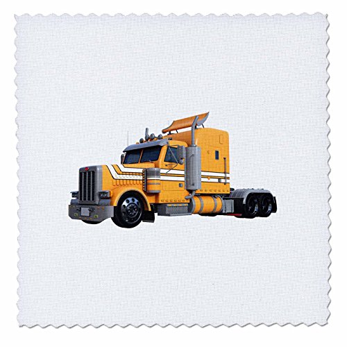 3dRose Orange Semi Truck in Three Quarter View Quilt Square, 10 x 10"