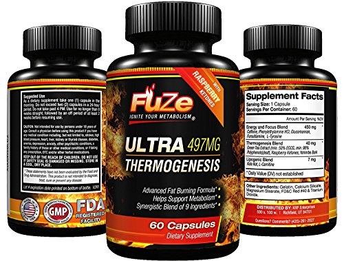 -. Feature : *Fuze Ultra Thermogenesis is the ultimate fat burning supplement to jumpstart your weight loss journey--just in time for that summer body! Our proP.R.Ietary formula cuts your appetite, speeds up your metabolism to burn fat FAST, and helps you focus! See why people are raving over FUZE Ultra Thermogenesis! / *Energy and Focus Blend - Increase muscle strength, metabolizing fat, freeing fatty acids and forcing them to burn, increasing mental faculty, helps increase dopamine and norepinephrine transmission, appetite suppression. / *Thermogenesis Blend - Improving cardiovascular health, enhancing weight loss, boosts mental alertness, enhanced memory, metabolizing fat, appetite suppression. / *Lipogenic Blend - Induces fat loss, increases metabolic rate through beta adrenergic agonism, improved blood circulation, appetite suppression, and increased sexual health. / *Made in the USA