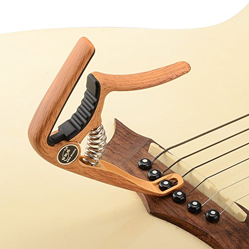 Features: Material: zinc alloy silicone pad strong spring Capo is made of zinc alloy, which contains corrosion and abrasion resistant as well as anti-rust properties for long service life, and it feels extremely fine and smooth in your hand. Spring is made of stainless steel, which has good elasticity, so durable and useful, hold the strings perfectly and won't hurt your precious guitar. The capo has two functions: tunings and string nail pulling. A great present for friends or yourself. It is conveniently parked in different occasion. Package include: 1 * Painting Guitar Capo 0