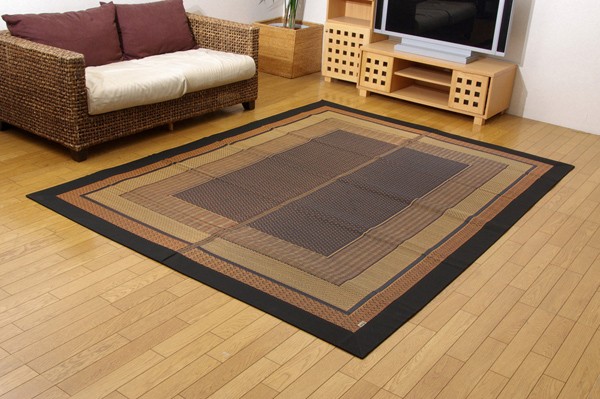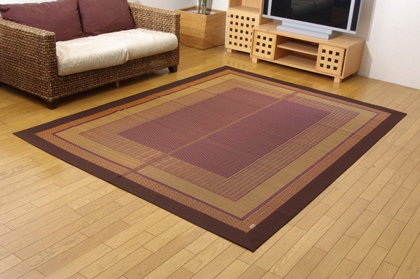 現代のライフスタイルに合う、洗練されたモダンなデザインのい草カーペットです。国産(九州産)のい草を使用しています。一本一本が太く、表皮が厚く繊維がキメ細かいので弾力性があり、耐久性に優れています。い草には空気の自然浄化作用、湿度の調節作用などがあります。また汚れにくく、使用するうちに黄金色に変化し味が出ます。い草に青森ヒバ加工を施しています。(抗菌、防臭効果)