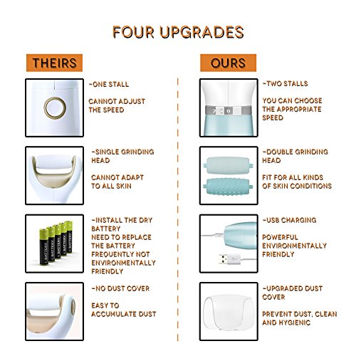 How to use: 1.Please remove the dust-proof cover above the roller before the use. 2.Make sure that the grinding roller is firmly fixed to the main part of the device. 3.Push the button and start the device.Gently move the grinding roller on the callus and then the dead skin will be removed easily. 4.Finally switch off the device and check whether the callus is successfully removed and the foot is tender, smooth as you expect. 5. After the use, please use your cream and give your tender feet a massage after cleaning.