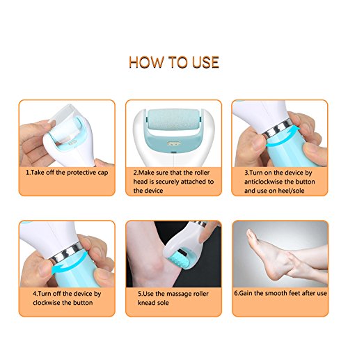 Tips: Please use the product on the dry foot! The softening foot skin after a foot bath or a shower has a bad effect on removing the callus. Note: The main part of the device is not water-proof.