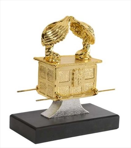 - Elegant sculpture replicates the Ark of the Covenant in shiny gold-plate on black base