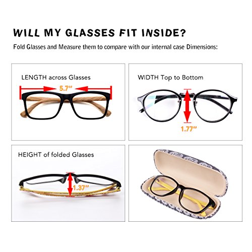 Binding : Eyewear Product Description This eyeglasses box suits for those who pursue the fashion and art of life, it could make you feel young and romantic everyday ! Fine workmanship, special patterns, unique and innovative. Our glasses case provides a good place to store your glasses or other small item, it can also keep your eyeglass safe. Durable and lightweight, how can you resist such a little fancy companion for your eyeglasses? Product Parameters: Material: cloth sponge layer plastic material Eyeglasses case size(L x W xH) : Approx 16.2 x 6.25 x 3.75cm/6.37x2.46x1.47 inches. Contact lens case size(L x W xH): About 8.4x 5.6 x 3.25cm/3.30x2.20x1.27 inches. Design: elephant,floral,skull,plum bottom pattern Kindly Note: Due to different monitors display differently, our website presents product items are as close to real color, so the color of the real goods maybe a little bit different from the picture, please understand. Package Included: 1x eyeglass case 1x Contact lens case