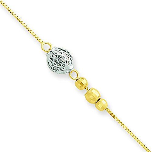 14k Two-Tone Gold Bead With 9 Inch With 1inch Ext Anklet - 1.8 Grams in 14k Yellow Gold and White Gold - JewelryWeb Style: QTA213030YW - FREE gift-ready jewelry box
