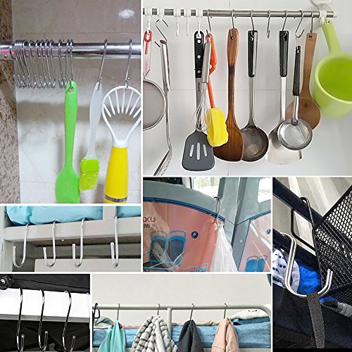 VERSATILE: One of the great things about S hooks is that they are not limited to a specific area of your home. They can be used both indoor and outdoor and for a number of things: use them in the kitchen for hanging pots, utensils, or even coffee mugs; in the bathroom for hanging towels; in the garage for organizing your tools; or take them outside for hanging plants or for keeping up with your grill utensils.