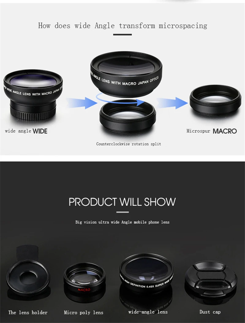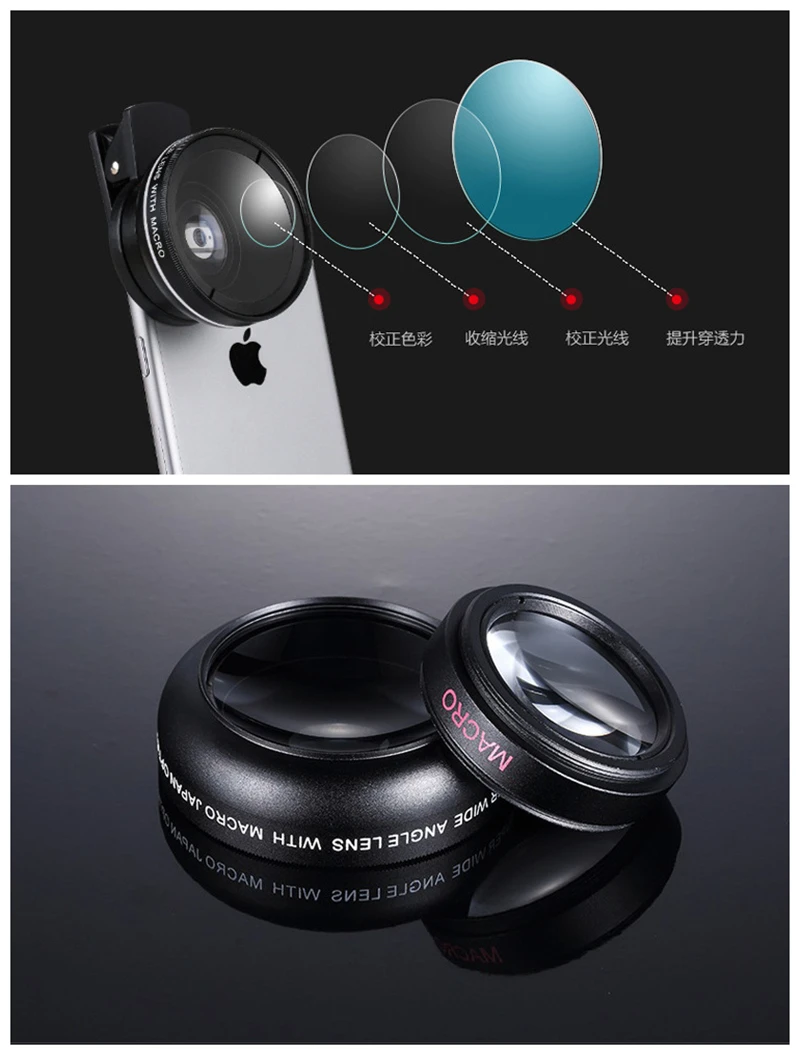 Feature A:0.45X Wide Angle+12.5X Macro Clip-on lens